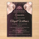Elegant personalized Quinceañera invitations designed to celebrate a beautiful Mis Quince Años. Featuring a rich burgundy background with rose gold script, this invitation includes space for Mass and reception details, creating a timeless and sophisticated announcement for your special day.