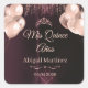 Elegant personalized Quinceañera square stickers customized with a name and event date. Designed with a rich burgundy background and rose gold script, these stickers are perfect for decorating favor boxes, candy bags, treat packets, and gift packaging.