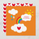 A wonderful brightly colored weather themed pattern including a rainbow, white fluffy clouds, a drizzle of rain and sunshine.