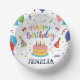 Celebrate in style with this adorable Personalized Happy Birthday Paper Plate! Featuring colorful, hand-drawn illustrations of a birthday cake with candles, vibrant balloons, confetti, and party hats. The playful, rainbow-colored "Happy Birthday" script and the customizable name (Jenelia is shown) make this perfect for any child's birthday party, first birthday, or festive event. A fun, disposable plate that adds a bright, cheerful touch to your celebration!