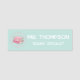 This badge looks professional and it's in keeping with my branding. The magnetic attachment is strong and stays in place all day. The quality of the materials and the colors were exactly as pictured. I couldn't be happier! The printing is clear and easy to read