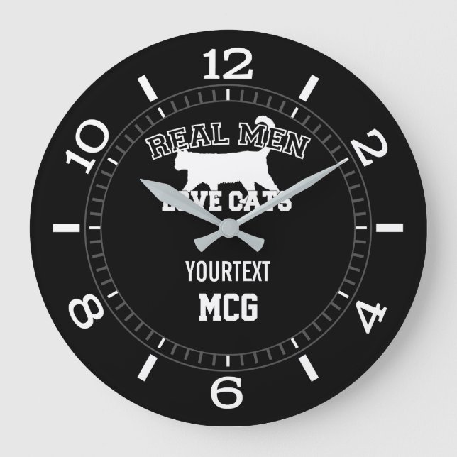 Personalized Real Men Love Cats Silhouette on a Large Clock