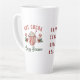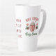 Embrace the festive spirit with this Hot Cocoa Cozy Season Latte Mug. Featuring a charming, retro-inspired design, this mug captures the warmth of winter holidays. The artwork showcases a striped hot cocoa mug topped with whipped cream, flanked by candy canes and evergreen sprigs—perfect for a Christmas or winter theme. The mug has a crisp white exterior and a bold, contrasting interior (like the visible rich maroon/red). It's an ideal piece of personalized drinkware for sipping hot cocoa, coffee, or tea all season long. Customize the text for a unique, thoughtful gift for friends, family, or Secret Santa exchanges!