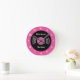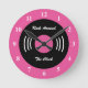 Personalized rock and roll wall clock. Funny novelty vinyl record design with custom text and color. ie neon pink. Cute home decor for 60s 70s 80s interior or party. Retro style decoration. Rock around the clock!