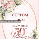 Celebrate a milestone moment with this personalized 50th birthday custom sign designed in soft watercolor florals and elegant greenery. Featuring a refined color palette of rose gold accented with blush pink, dusty pink, and pastel pink tones, this sign adds sophistication and warmth to your birthday décor. The delicate floral artwork combined with fresh botanical greenery creates a timeless and feminine look perfect for elegant milestone celebrations.