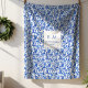 Personalized Royal Blue Floral Toile Cozy Blanket