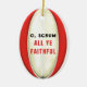 Creative rugby Christmas holiday gift ornament featuring red and white rugby ball and funny quote. To personalize edit text to add name and the year.