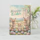 Celebrate Easter with cute, retro charm using this personalized Easter greeting card, featuring a watercolor bunny family set in a meadow with a decorated tree and lots of colorful Easter eggs. Soft pinks, pastel greens, blues, and botanical details create an elegant vintage aesthetic. This fun Easter card is an ideal choice for those who love retro vintage illustration style and seasonal stationery. Fully customizable, this card allows you to add your family name, individual names, or a personalized Easter message, making it a thoughtful option for family greetings, spring well-wishes, or friendly holiday correspondence. Perfect for anyone who appreciates non-photo Easter cards, this design offers a charming way to celebrate the season.