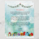 Personalize this letter from Santa with your child's name and text. This design features a string of mistletoe, presents and misty snowflakes teal light blue background.