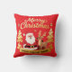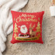 Add a touch of luxury and festive cheer to your home with this beautiful personalized Christmas throw pillow. Featuring a vibrant red background and sparkling gold accents, the design showcases a classic Santa Claus beside his reindeer. The elegant "Merry Christmas" script and the customizable banner make this cushion a unique holiday decor item. Easily add your family name, a special year, or a personalized message to the gold banner. Perfect for sofas, armchairs, or bedrooms, this pillow makes a wonderful housewarming gift or a standout piece for your own seasonal decorating.