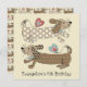 A pattern of cute little sausage dogs happily running along with a heart balloon tied to their tails.