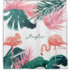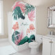 Personalized Shower Curtain - with flamingos and tropical leaves.
