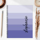 This trendy modern design features five color block stripes in gradient tints from light to medium periwinkle. Personalize it with your name in vertical black signature handwriting script.