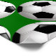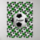 A football soccer ball design which is fully customizable with your own name or text. The background features a pattern of soccer balls on a football pitch green. Ideal for any soccer player, football coach or soccer fan.