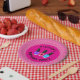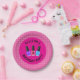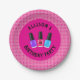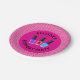 These custom party plates are perfect for a spa themed or slumber party. You can customize these plates with the birthday girl's name, age (optional), and party message. The default message is "Birthday Party" but you can change it to "Spa Party", "Slumber Party", "Spa Birthday Party," etc. These feminine party plates have hot pink polka dots set against a lighter pink background. In the foreground, there is a bold hot pink center that serves as a backdrop of an image of three nail polishes in purple, pink and blue.