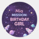 Blast off into an unforgettable celebration with this personalized space birthday girl sticker! Featuring a dreamy galaxy background with rockets and planets, this design is perfect for little space explorers. Customize it with your child’s name to make the party extra special and unique. Ideal for party favors, gift bags, invitations, and decorations. Fun, vibrant, and out-of-this-world adorable — the perfect finishing touch for a space-themed birthday party!
