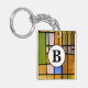 Custom double-sided keychain with colorful stained glass background. Add your initial to this product by using the personalized template