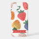 The design features scattered strawberries in a fun, slightly retro style, paired with soft leafy shapes and a balanced color palette. It has that easy summer vibe, like a picnic in the sun or a relaxed afternoon with your favorite drink. The personalization adds another layer, making each piece feel unique and intentional. Adding a name or short word transforms it from a pretty design into something that feels truly yours.