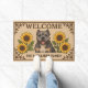 Welcome guests with charm and warmth using this personalized doormat design! Featuring a beautiful American Bully dog, cheerful sunflowers, and a lovely border, it adds a friendly touch to any home. Customize it with your family name for a unique and heartwarming way to greet visitors.