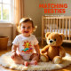 A cheerful baby design featuring a smiling sun and soft flowing rainbow waves in warm, playful colors. Personalized with the baby’s name, this sweet illustration adds a happy and uplifting touch, perfect for everyday baby wear and joyful moments.