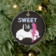 Personalized Modern Sweet 16 Christmas Ornament. Features silhouette girl and car in pink, blue, brown and white.