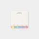 This colorful teacher Post-it® note pad features a cheerful row of rainbow pencil tips along the bottom edge and a customizable message at the top that reads “A note from” followed by your name in clean serif typography. Designed to bring a sense of fun and personality to everyday communication, this sticky note pad is ideal for classroom use, school staff, or tutors who want to make routine messages more memorable. The minimalist white background ensures your writing remains the focus, while the playful pencil design adds just the right amount of visual interest. Whether you're jotting down a reminder, sending a message home to parents, or leaving a quick note for a student or colleague, this stationery combines function and charm. The horizontal layout and balanced design make it both stylish and practical for educators who value organization with a touch of creativity. Perfect for teachers looking to add a personalized, uplifting detail to their daily notes.