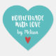 Personalized Teal White Homemade With Love Heart Sticker