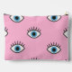 blue evil eye, pop art, pink background, modern pattern, bold design, trendy accessories, eye motif, statement style, quirky decor, fun gifts, unique pattern, colorful style, graphic print, contemporary home, artistic flair, creative gifts, playful design, stylish tote, insulated tumbler, ceramic mug, spiral notebook, accessory pouch, laptop sleeve, throw pillow, compact mirror, flask gift, apron, can cooler, cool stationery, funky home, urban chic, art lover gift, edgy decor, back to school, workspace decor, purse mirror, girls room, conversation starter, pop culture, protective symbol, lucky charm, fun home, office accessories, motivational, hostess gift, matching set, everyday essentials, artist gift, student gift, unique décor, coordinated look