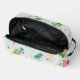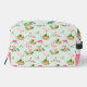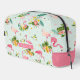 Turn your daily routine into a tropical escape with this vibrant and personalized flamingo dopp kit. Designed with a pastel aqua background and bursting with exotic florals, pink polka dots, and whimsical flamingos, this toiletry bag is a perfect blend of function and flair.