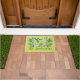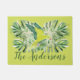 Welcome guests to your home in style with this bright and vibrant doormat with a tropical vibe. Whether you're looking for a mat with a fun summery style or want a doormat that fits your warm and sunny climate, this welcome mat is a perfect choice with it's illustration of a green parrot and some palm tree leaves, its bright lime green background and your name in green script lettering.