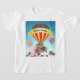 A truly charming and delightful digital artwork featuring colorful hot air balloons set against a tropical background of swaying coconut trees, blue sky and a full moon. Add a name for a truly personalized gift.