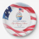 This personalized paper plate is part of the Honoring Service: U.S. Military Retirement Collection. Designed with an American flag border and a patriotic cupcake illustration featuring a small flag in the center, it creates a festive yet respectful look for a military retirement celebration. Customized with the retiree’s name, this plate is perfect for retirement parties, farewell events, and patriotic gatherings honoring years of dedicated service.