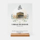 Celebrate a blessed spiritual journey with this personalized Umrah Mubarak acrylic sign, featuring an elegant illustration of the Kaaba in Mecca surrounded by soft florals and Islamic calligraphy.