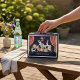 Step right up for a dazzling display of circus fun with this charming watercolor metal lunchbox! Featuring a vibrant collection of performing animals like a juggling elephant, a balancing lion, and a unicycling bear, all set against a dramatic stage with red velvet curtains, this lunchbox is sure to bring smiles. The deep navy background and delicate watercolor style create a whimsical and nostalgic feel, perfect for little ones. It's durable and spacious, ideal for carrying lunches, snacks, or treasures for any adventure.