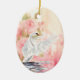 Personalized Watercolor White Swan and Roses Ceramic Ornament