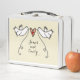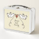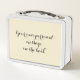 This is a standard metal lunchbox that appears to work just fine. We designed this box ourselves with an uploaded photo and custom text on the front and back. It looks absolutely beautiful except the front of the lunchbox is not centered like it shows in the photo. The print borders don't align with the inset flat part of the box where the preview photo online showed it perfectly centered in there. The back looks nice and centered though.