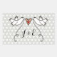 An illustration of 2 beautiful doves holding flowing ribbon with a love heart attached.