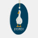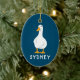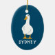 Personalized White Duck Illustration Navy Blue Ceramic Ornament
