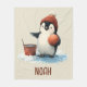 Personalized Winter Penguin Basketball Kid Fleece Blanket