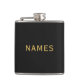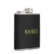 The flask itself is fine. It’s a cheap flask, obviously bought in bulk, however am prepared to overlook that. Given that it is a personalized item, I would have liked to have seen gift boxing instead of the generic packaging. Terrible printing, and/or quality. It’s a cheap, tacky vinyl. It is not cut straight and is also applied in a way that it is overhanging the bottom, causing the glue to catch on items and it will eventually roll and tear, damaging the wrap.