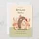 Adorable personalized woodland hedgehog birthday invitation with cute forest mushrooms and leaves — perfect for kids of any age! Available as printed card or instant digital download.