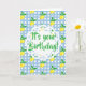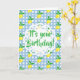 Personalized Yellow Lemons Blue White Birthday Card