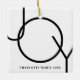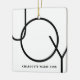This modern Christmas Photo Ornament is decorated with the word JOY in black on a white background.