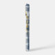 Soft blue plaid phone case with elegant gold splash details for a modern aesthetic look.