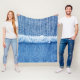 Perspective and closeup view to texture of blue je fleece blanket