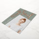 A modern photo graduation announcement features a vertical or portrait orientated photo with a slight tilt for a fresh look. "Grad" appears in brush lettered rose gold foil script typography. Personalise with the graduate's name, school, and graduation year. Add a personal message to the back, along with an additional photo.