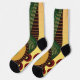Perspective socks. Perspective is an abstract design created by Vexenwraith and consists of multi-coloured shapes on a brown background.