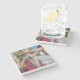 The coasters are gorgeous, a quality feel and heavy weight. They look like a precious archeological find. A rustic stone juxtaposed with a modern floral black and white print. I like the way the print goes slightly imperfect on the cut stone edges giving them a kind-of natural beauty.