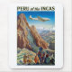 Vintage travel poster for Peru, showing an early airliner flying over an Andean ruin site.