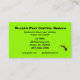 The abstract interpretation of a radioactive spider featured on this business card is advertising a pest control service. He stands out on the card in colours of neon green and black. The specific text is on the reverse along with a small ant. All text can be customised to suit your particular business.
